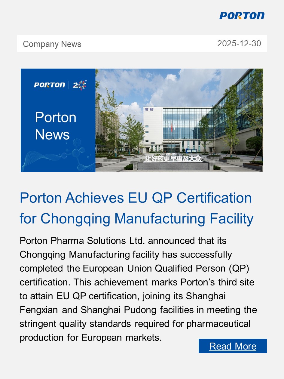 Porton Pharma's Chongqing facility successfully completes EU QP Audit. Third site to meet European quality standards for drug manufacturing.