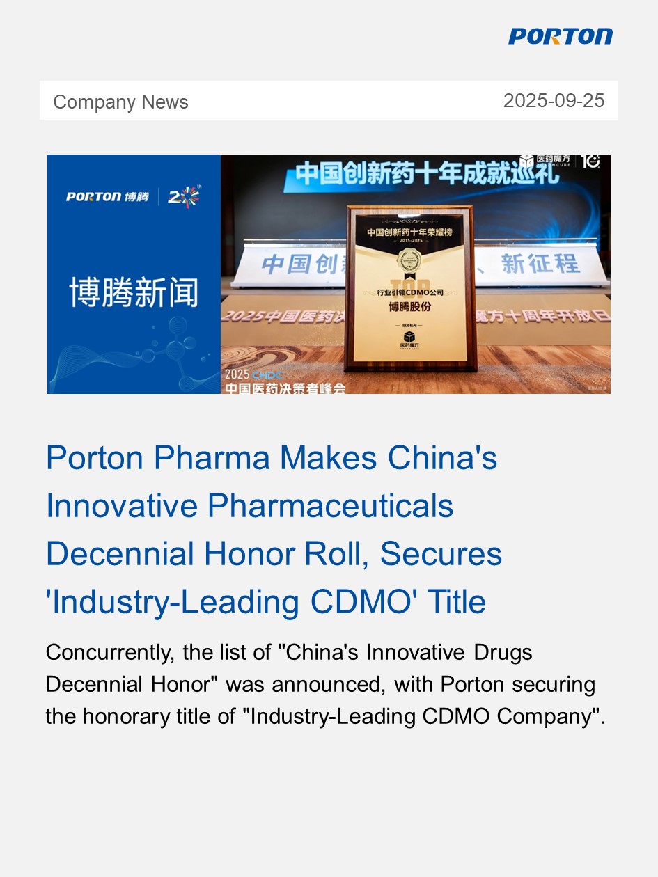 Porton Pharma Makes China's Innovative Pharmaceuticals Decennial Honor Roll, Secures 'Industry-Leading CDMO' Title