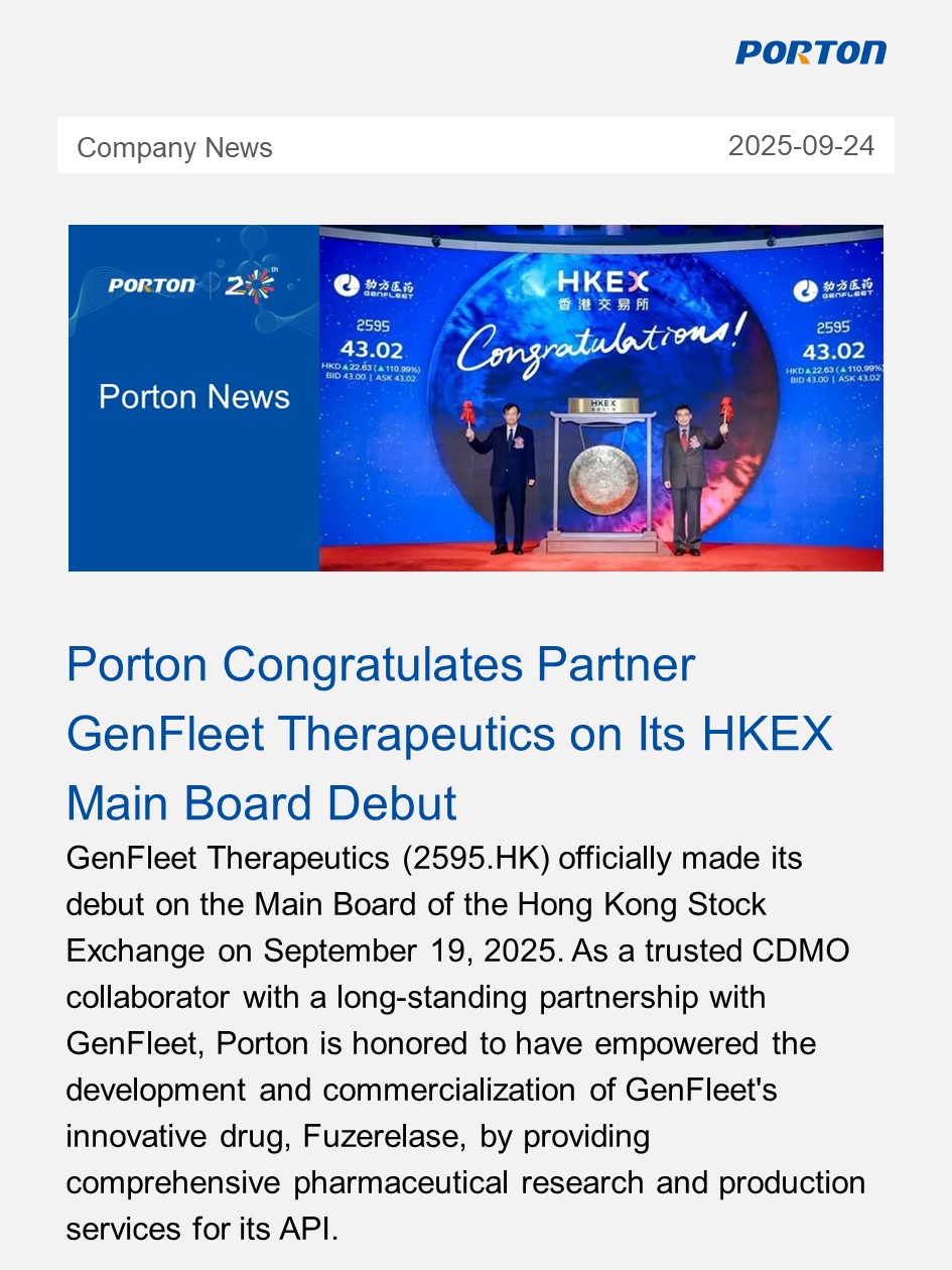 Porton Pharma honored as Industry Leading CDMO Company for innovative drug development services. Learn more about our award and global capabilities.