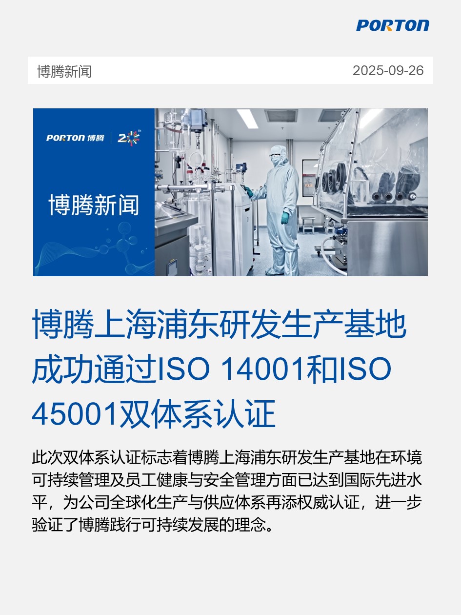 博腾上海浦东研发生产基地成功通过ISO 14001和ISO 45001认证,以绿色生产与职业健康安全管理体系,为全球客户提供高标准CDMO服务。