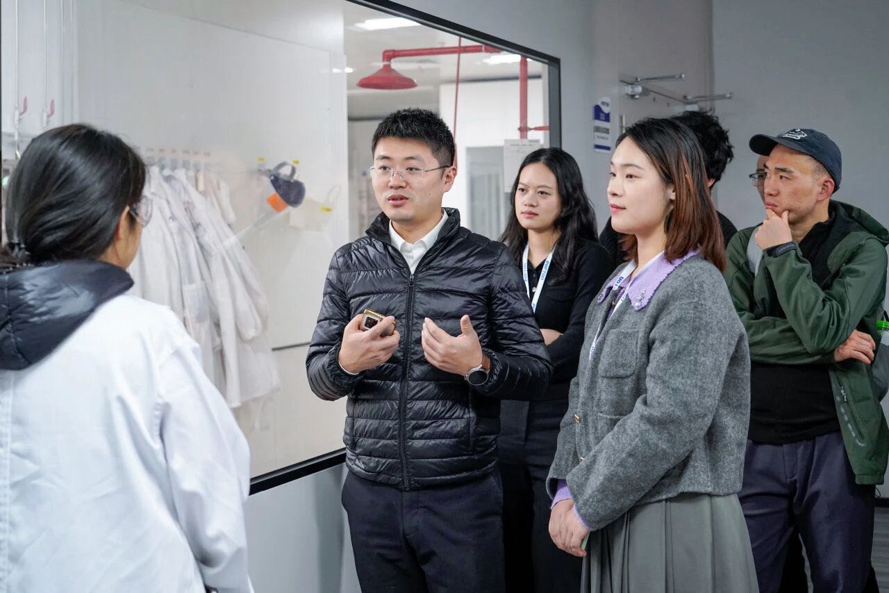 报告结束后,调研团在技术团队带领下,实地探访闵行研发中心核心科室。分析实验室中,国际先进仪器与智能化数据系统无缝衔接,实现实验数据精准追溯;安全实验室通过专业设备对项目进行全面风险评估,从源头防范安全隐患;在新技术中心领略了结晶、生物催化、流体化学等化先进技术理念及高端自动化设备。调研团表示,博腾将技术创新与合规管理、绿色生产要求深度融合的实践,让他们更深刻地理解 CDMO 行业 “技术 + 责任” 并重的发展逻辑。