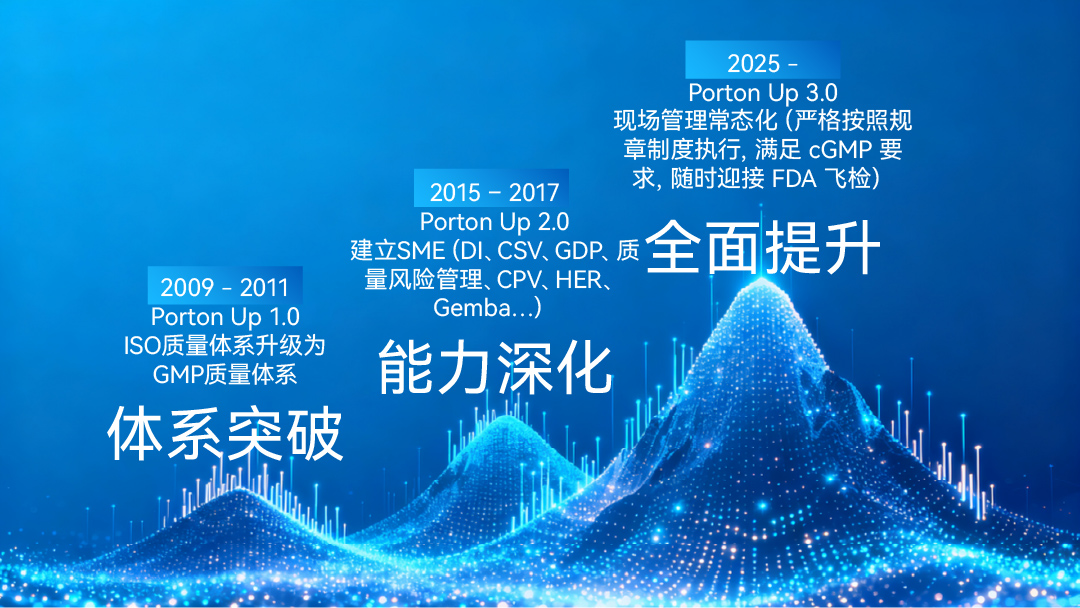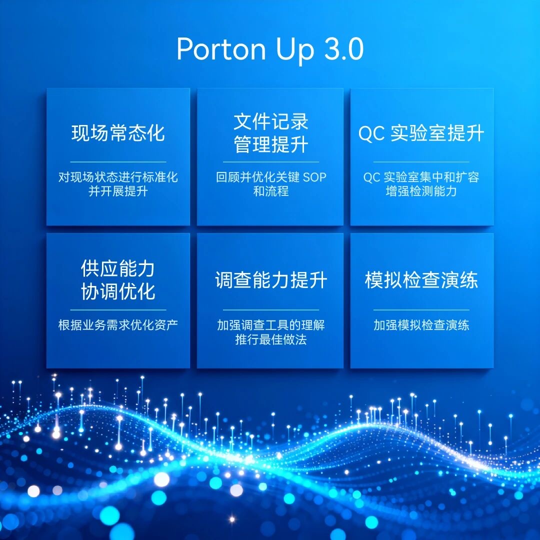 自成立以来,博腾始终以“体系合规,持续改进,客户导向”为核心理念,依托运营管理模式的迭代升级,不断夯实根基。从Porton Up 1.0的体系转型突破,到2.0的核心能力深化,再到如今3.0的全方位提升,每一步跨越都深刻践行着博腾 “让好药更早惠及大众” 的坚定理念,彰显其对高质量发展的不懈追求。